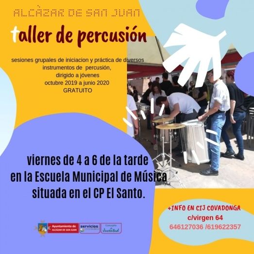 Desde los Servicios Sociales del ayuntamiento de Alcázar de san Juan a través de la concejalía de Juventud se pone en marcha una nueva edición del taller de iniciación a la percusión, dirigido a jóvenes a partir de 12 años.