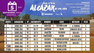 Esta mañana ha tenido lugar el sorteo de los de Daniel Ruiz para la corrida de Feria de Alcázar de San Juan. Este es el orden de lidia, según informa Tauroemoción.