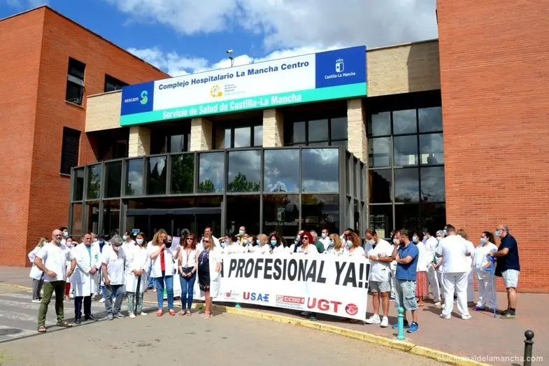 Varias decenas de trabajadores del SESCAM en Alcázar de San Juan se han concentrado esta mañana delante de la puerta del hospital La Mancha Centro para volver a exigir la carrera profesional y anunciar la continuidad de sus movilizaciones, convocadas por los sindicatos con representación en la Mesa Sectorial (SATSE, CESM, CSIF, USICAM, USAE, CCOO y UGT).