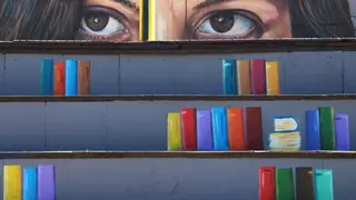 La decoración de las gradas del auditorio son un tributo a esta biblioteca del siglo pasado, un atractivo más de este lugar de ocio que tuvo gran importancia durante gran parte del Siglo XX, hasta que se construyó el Parque Alces en la década de los 70.