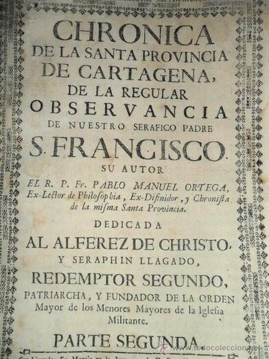 Fig.1. Chronica de la Santa Provincia de Cartagena. Parte Segunda.