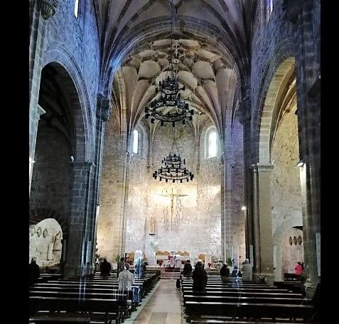 La nave central que puede apreciarse en (fig.1) tiene 10 metros de ancha, 18 de alta y 45 de larga está coronada por una bóveda de nervios destacados de gran variedad e interés. Los capiteles de arranque de la bóveda son platerescos. Los ventanales son renacentistas.