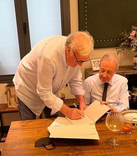 Vicente Paniagua entrega su biografía a Florentino Pérez y recuerdan momentos en el Real Madrid