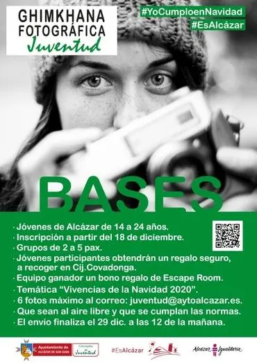 El ayuntamiento de Alcázar de San Juan, a través de la concejalía de Infancia, Adolescencia y Juventud, ha convocado la Ghimkhana Fotográfica Juventud con la temática “Vivencias de la Navidad 2020”. Las bases recogen que las imágenes deberán realizarse al aire libre y cumpliendo las medidas sanitarias.
