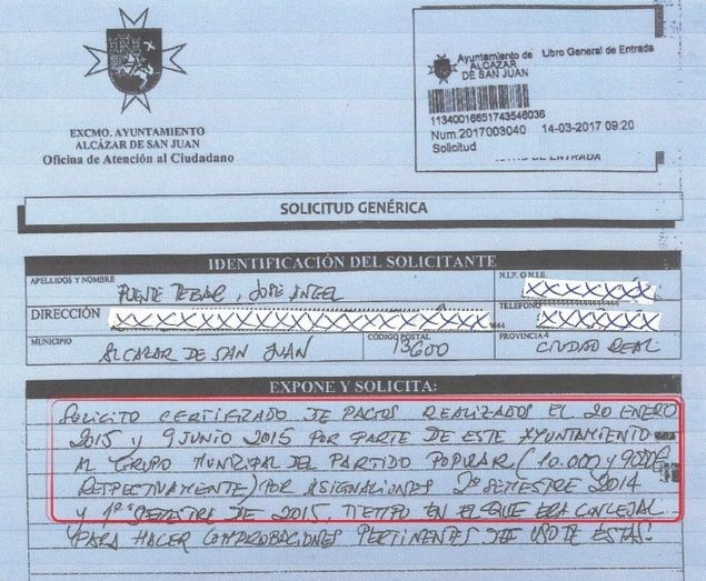 Quizá les traicionó el subconsciente y no recordaron los 10.000€ pagados por el Ayuntamiento el 20 de enero de 2015, ni los 9.000€ pagados por el Ayuntamiento el 9 de junio de 2015, un total de 19.000€ cobrados por el grupo municipal en el primer semestre de 2015, que acaban en la cuenta del partido. Claro, si no recordaban estos ingresos, no recordaban tampoco en qué los gastaron, mejor negarse a contestar, sí. Se adjunta Anexo 1, solicitud al Ayuntamiento de los pagos de las asignaciones al grupo municipal del PP en 2015, 10.000€ en enero de 2015 y 9.000€ en junio de 2015.