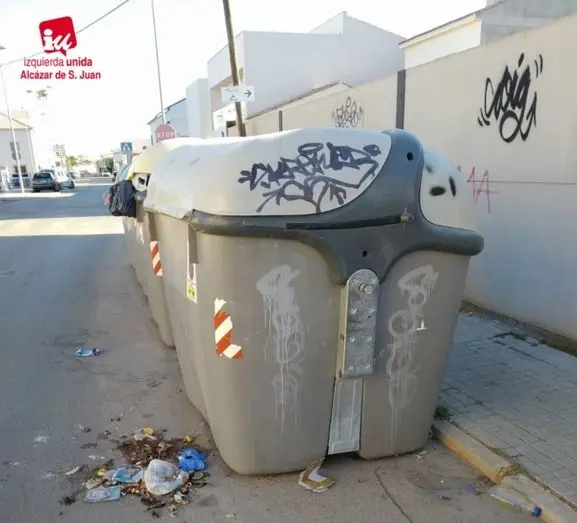 Los vecinos del barrio El Porvenir se han puesto en contacto con Izquierda Unida Alcázar para denunciar que llevan varios días sin servicio de recogida de basuras, además de que los contenedores calcinados de la Calle Cuatro Caminos no han sido repuestos, con lo que se han de desplazar un kilómetro para poder depositar los residuos en el siguiente contenedor.