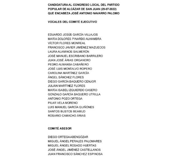 José Antonio Navarro recogió anoche el testigo que deja Diego Ortega en la presidencia del Partido Popular de Alcázar de San Juan, con una única candidatura presentada en cuya Junta Directiva, compuesta por 9 personas además de los vocales, el nuevo presidente cuenta con los conocidos populares Loli Pinardo, Víctor Flores, Juan José Arias, Javier Jiménez Mazuecos, Pedro Almansa, Laura Alaminos, José Manuel Escribano y el portavoz actual Eduardo García.