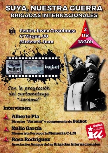 El Centro Joven La Covadonga de Alcázar de San Juan acogerá este sábado, 2 de agosto, un acto de homenaje a las Brigadas Internacionales organizado por los Jóvenes de Izquierda Unida de Alcázar. El acto dará inicio a las 18:30 horas.