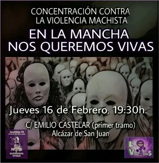 La Asamblea 7N Alcázar ha convocado una concentración urgente contra el terrorismo machista. "Urgente, porque en 15 días nuestra región se ha puesto a la cabeza de feminicidios en el Estado español, cinco mujeres asesinadas en Seseña, Mora y Daimiel, además de otra en Caudete en investigación", explican en la convocatoria.