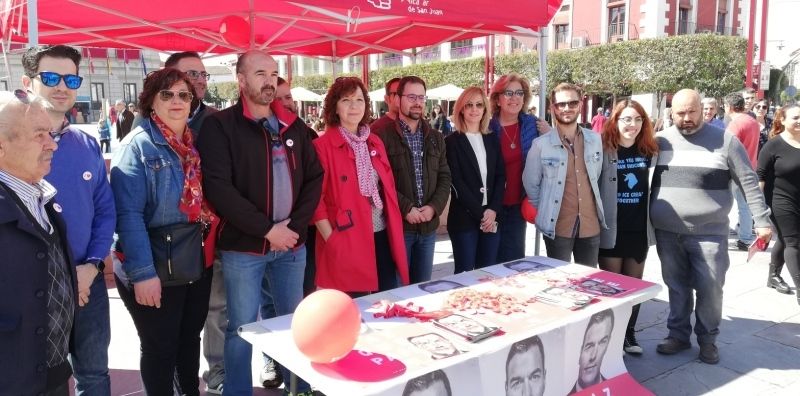 La agrupación socialista alcazareña ha vuelto este sábado a salir a la calle para instalar su stand electoral en la plaza de España, trasladar a los vecinos las propuestas de Pedro Sánchez y pedirles el voto de cara a las elecciones generales del domingo 28.