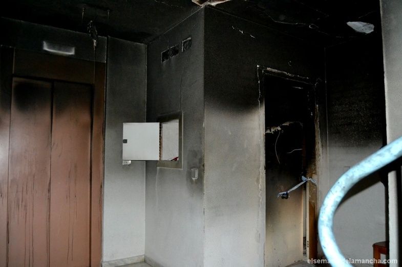 Los vecinos de la calle Irlanda (barrio La Pradera) de Alcázar de San Juan se recuperan poco a poco del susto, tras el incendio que esta madrugada ha afectado a un total de doce viviendas en uno de los bloques de pisos situado junto al centro social, donde se han visto dañados por el fuego y el humo también los pasillos, ascensor y espacios comunes.