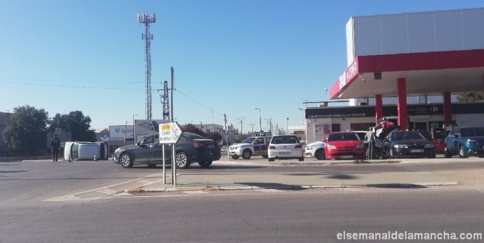 La Policía Local de Alcázar de San Juan ha tenido esta tarde que intervenir y regular el tráfico en la rotonda de la N420 cercana al centro penitenciario, donde ha tenido lugar un aparatoso accidente de circulación en el que se han visto implicados dos vehículos.