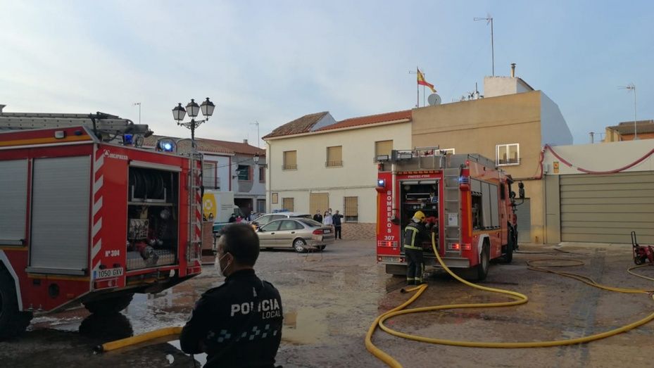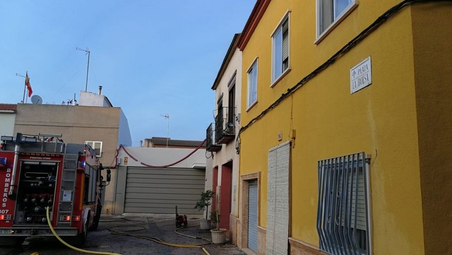 Varios camiones de bomberos y efectivos de la policía local han tenido que acudir esta tarde a la plaza de la Bolsa de Alcázar de San Juan para sofocar un aparatoso incendio producido en el interior de una vivienda (concretamente en el número 15). Como puede verse en la fotografía, las llamas que salían desde el interior han acabado con gran parte de la cubierta y estructura del edificio, afectando a todo el vecindario