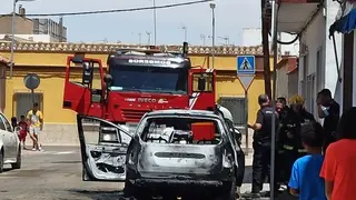 Un vehículo marca Peugeot ha salido ardiendo este mediodía en la calle Andrés Pastor de Alcázar de San Juan, a la atura del número 48, quedándose totalmente calcinado por las llamas, que han sido extinguidas por una dotación del parque de bomberos de la ciudad.