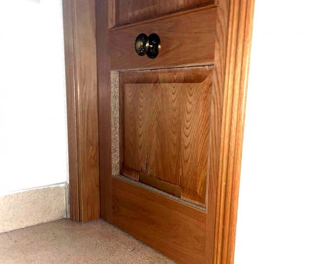 Como puede comprobarse en las fotografías, la puerta de entrada a la vivienda fue forzada para acceder al interior, donde, además de asaltar al hombre mayor residente, el autor del suceso sustrajo diversos objetos y aparatos de valor.
