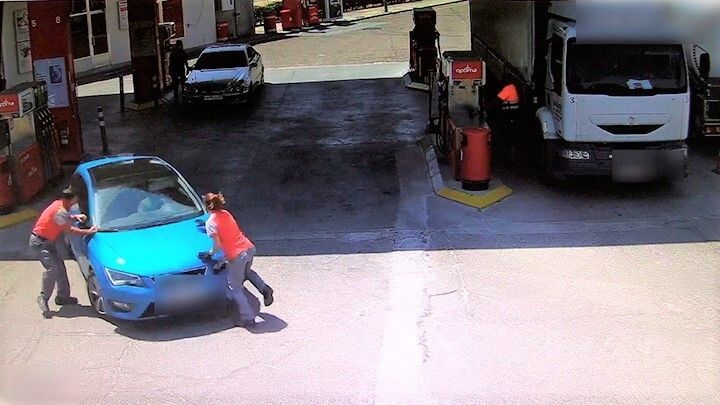 Esta persona entró a repostar su vehículo y a rellenar varias garrafas de gran capacidad de gasoil y gasolina. A continuación accedió a la tienda supuestamente para abonar el importe del combustible, pero simuló que se había dejado la cartera en el vehículo, por lo que volvió donde estaba estacionado e inició su huida del lugar.