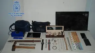 Durante le cacheo realizado a los detenidos, se les intervinieron 420 euros en efectivo, una tablet, joyas, relojes y dos teléfonos móviles. Además, los Policías localizaron una bolsa de color verde que contenía una televisión, una caja con seis relojes, joyas, y otros efectos.