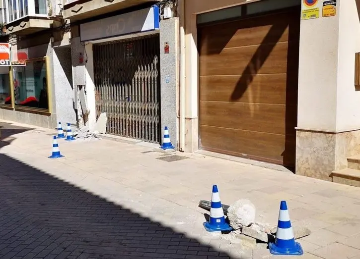 Un turismo se ha empotrado esta madrugada contra un bolardo de la calle San Francisco de Alcázar de San Juan y posteriormente contra una fachada, a unos metros de distancia, cuyos destrozos se pueden apreciar en la imagen.