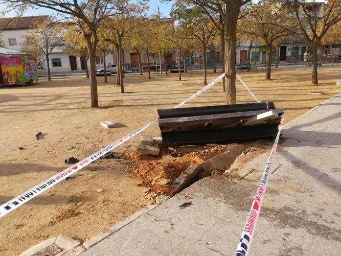 Un vehículo ha perdido el control por causas desconocidas y ha embestido en Alcázar de San Juan contra el mobiliario urbano de la plaza Arenal.