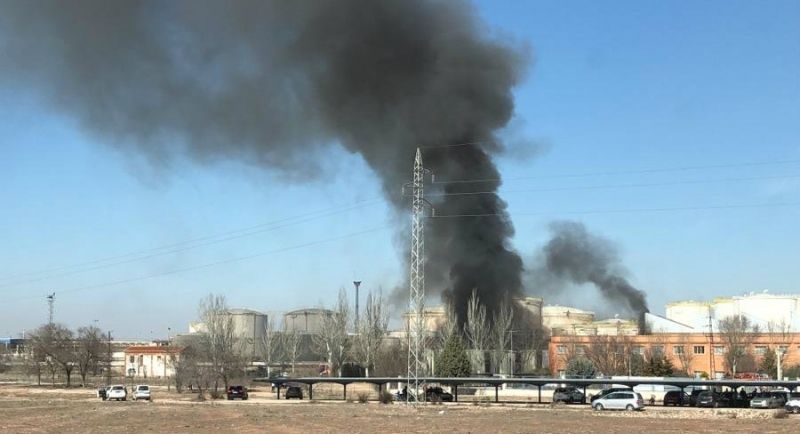 Una gran columna de humo negro procedente de Albatros alerta a los alcazareños