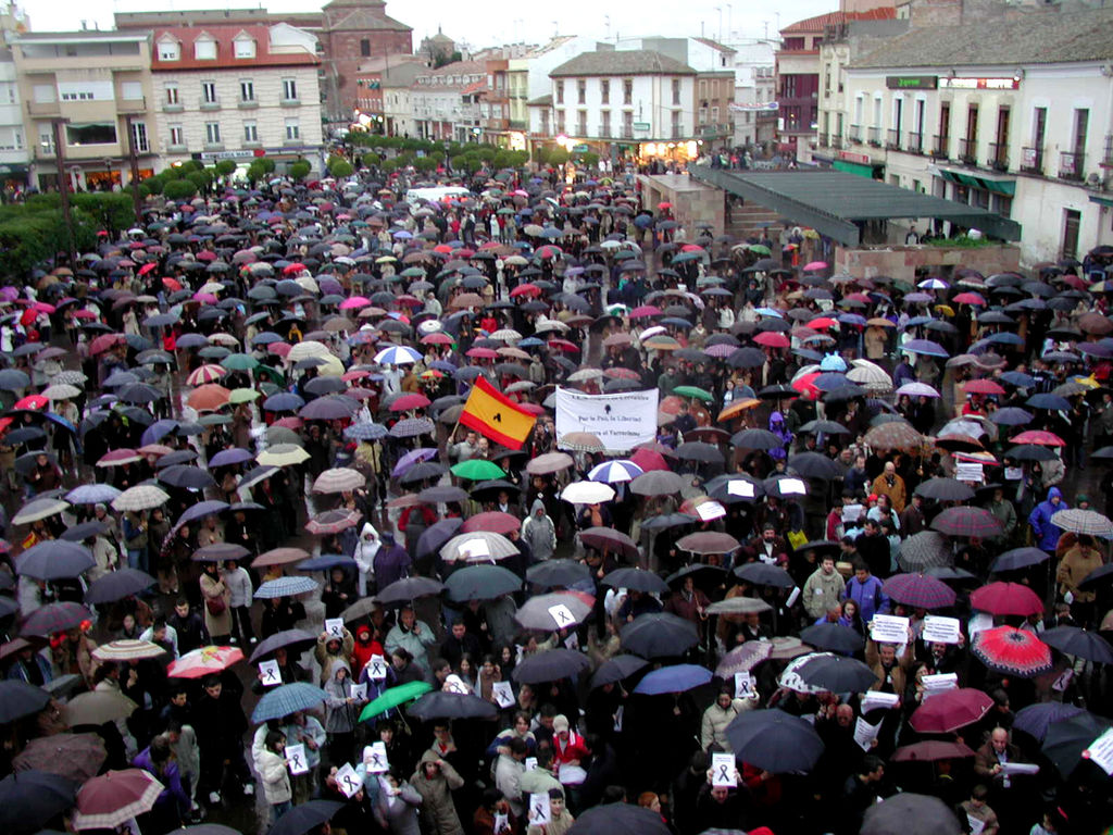 Ni la lluvia ni el mal tiempo impidieron entonces que la plaza de España se llenara de público, gentes de todas las edades, condiciones sociales e ideologías, unidos frente al terrorismo. En un comunicado leído por el entonces alcalde, José Fernando Sánchez Bódalo, toda la ciudad se sumaba al dolor y los grupos municipales se pronunciaban de manera unánime.