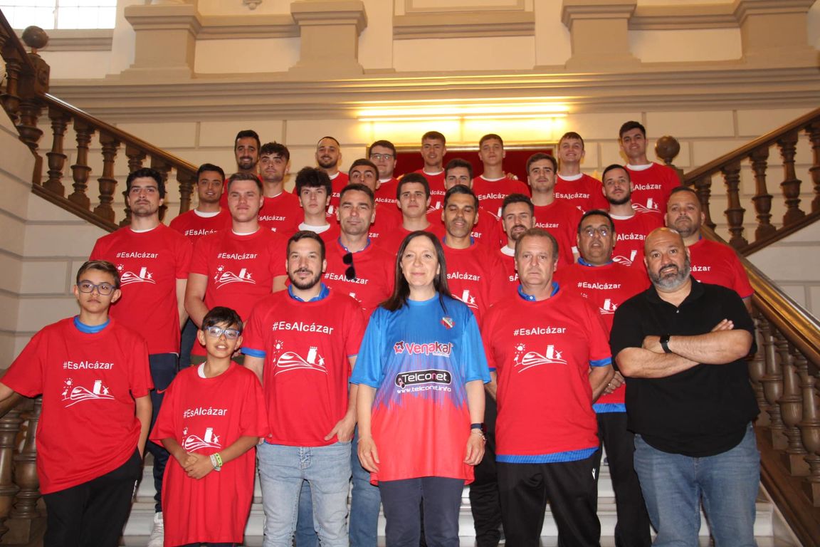 La alcaldesa de Alcázar de San Juan, Rosa Melchor, y el presidente del Instituto Municipal de Deportes, Javier Ortega, recibieron este martes al Alcázar Club de Fútbol Deportivo para felicitarles por su ascenso a 1ª autonómica. Un logro de gran valor teniendo en cuenta que su consecución ha llegado en la primera temporada de existencia del Club, cosechando así un gran éxito en su debut.