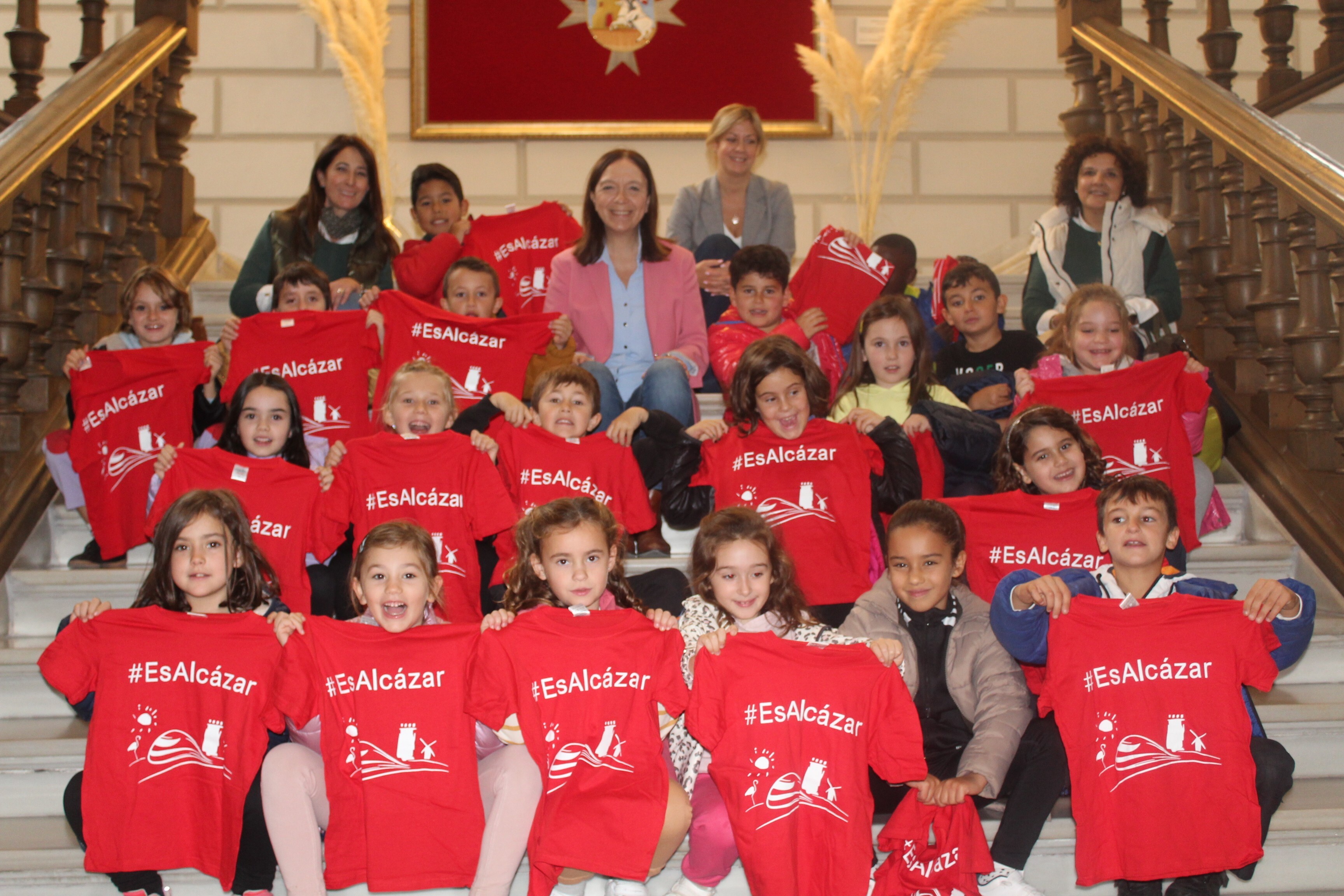 Para finalizar, Rosa Melchor y Ana Isabel Abengózar entregaron, tanto al alumnado como a las dos profesoras acompañantes, las camisetas institucionales de color rojo con el hashtag #esAlcázar.