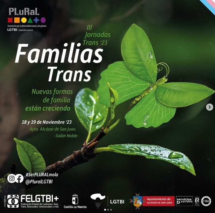 La Asociación Plural LGTBI Mancha Centro celebrará este fin de semana, días 18 y 19, las terceras Jornadas Trans, que en esta ocasión versarán sobre las Familias Trans, en las que se abordarán las realidades que plantean los nuevos modelos de familia que están formando las personas trans, desde múltiples puntos de vista como son los recursos que necesitan conocer los familiares; Sexo, sexualidad y orientación sexual; La transición familiar; Familia elegida y familia de origen; Adopción, acogida y gestación.