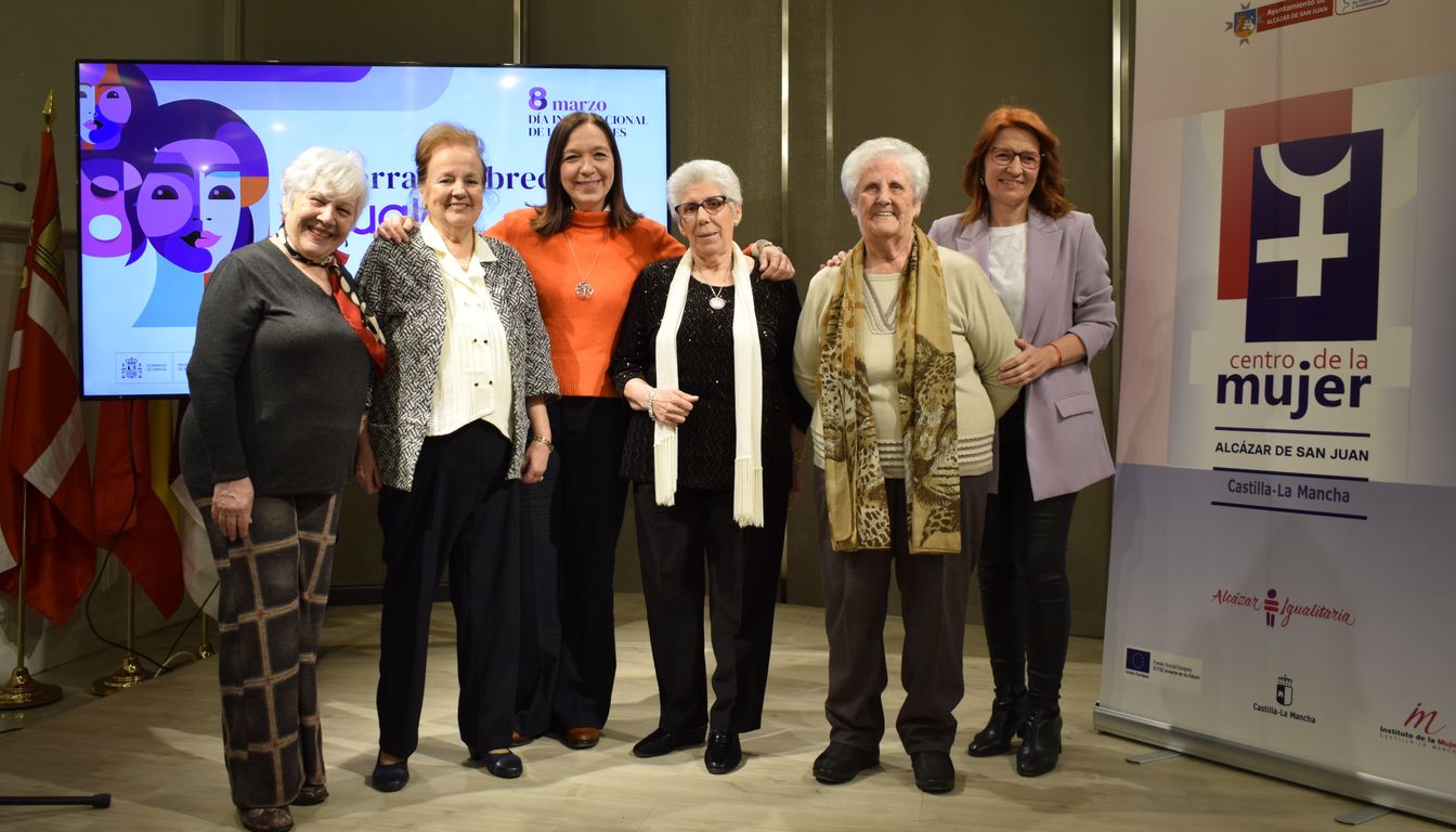 El Ayuntamiento de Alcázar de San Juan ha celebrado este 8M, Día Internacional de la Mujer, un acto institucional en el que ha querido reconocer a las presidentas de cuatro asociaciones de mujeres que han formado parte del Consejo de Igualdad desde sus inicios, reconocimientos entregados a sus presidentas en ese momento, algunas de las cuales continúan o, como es el caso de la Asociación de Viudas, en representación de la misma, ya que ha recogido el reconocimiento Minervina Requena en nombre de Antonia Tejado.