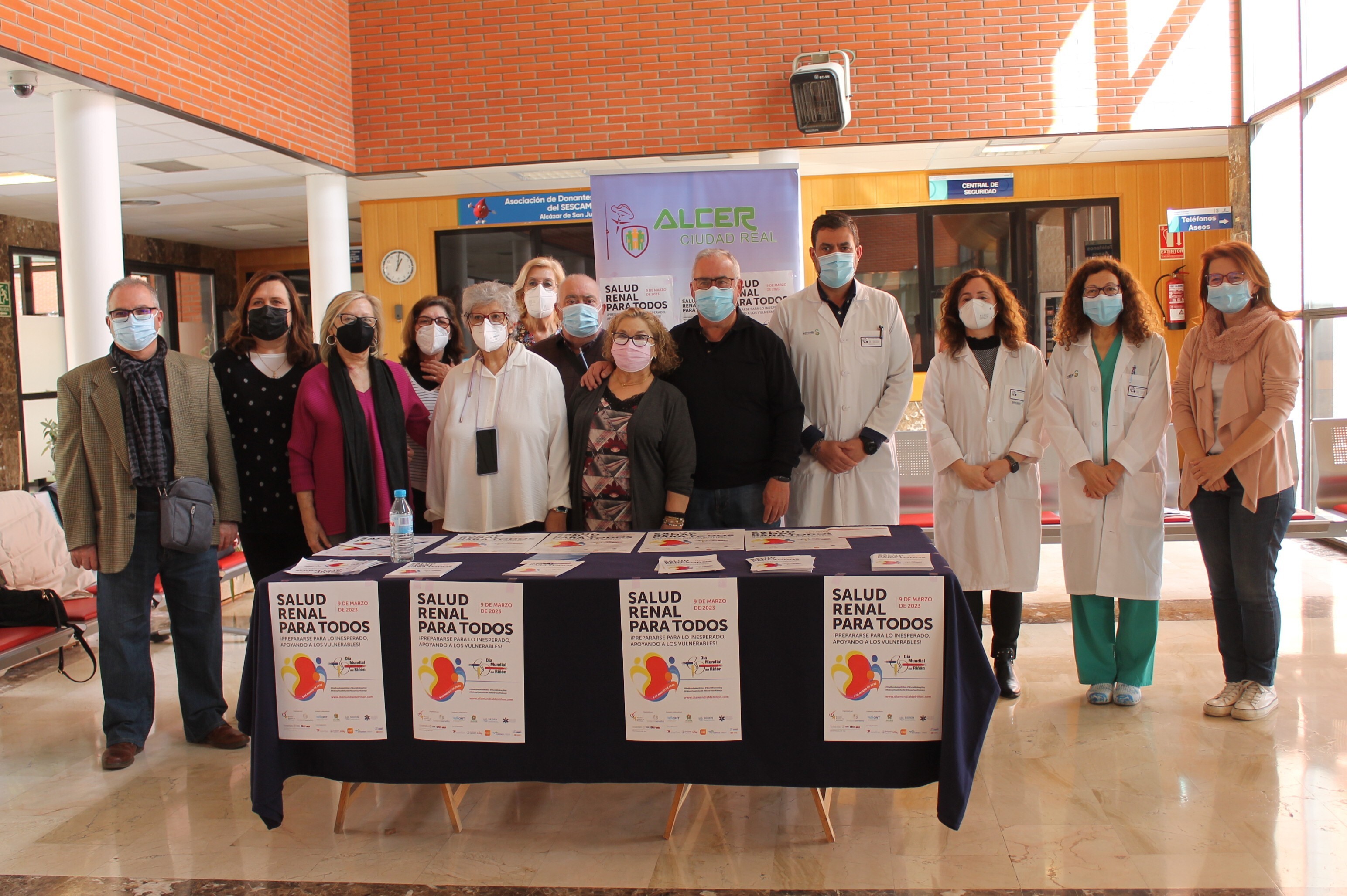 Con motivo del Día Mundial del Riñón, la Gerencia de Atención Integrada de Alcázar de San Juan y la Asociación para la Lucha contra las Enfermedades del Riñón (ALCER) han organizado un acto e instalado una mesa informativa en la puerta principal del Hospital Mancha Centro, con el objetivo de concienciar y sensibilizar sobre las enfermedades renales, en esta ocasión bajo el lema ‘Preparándonos para lo inesperado, apoyando a los vulnerables’.