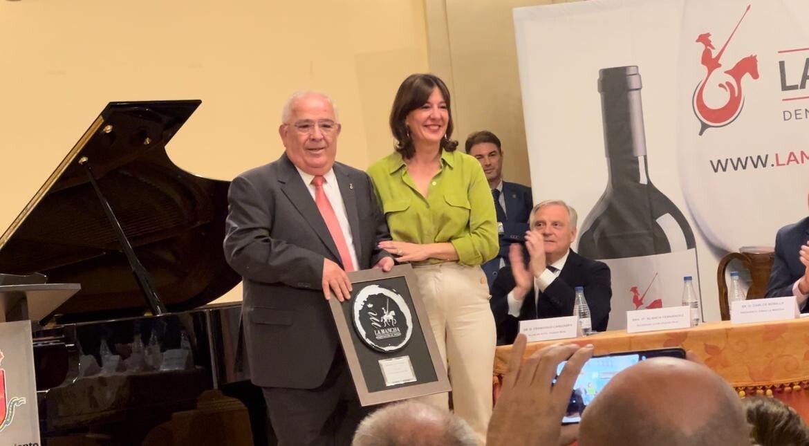 El vino manchego forma parte de sus cartas, según se explicó en la entrega de los premios, una persona valorada por su sencillez y por utilizar siempre bienes de la tierra. El premio que le fue entregado por la delegada de la Junta en la provincia de Ciudad Real, Blanca Fernández.
