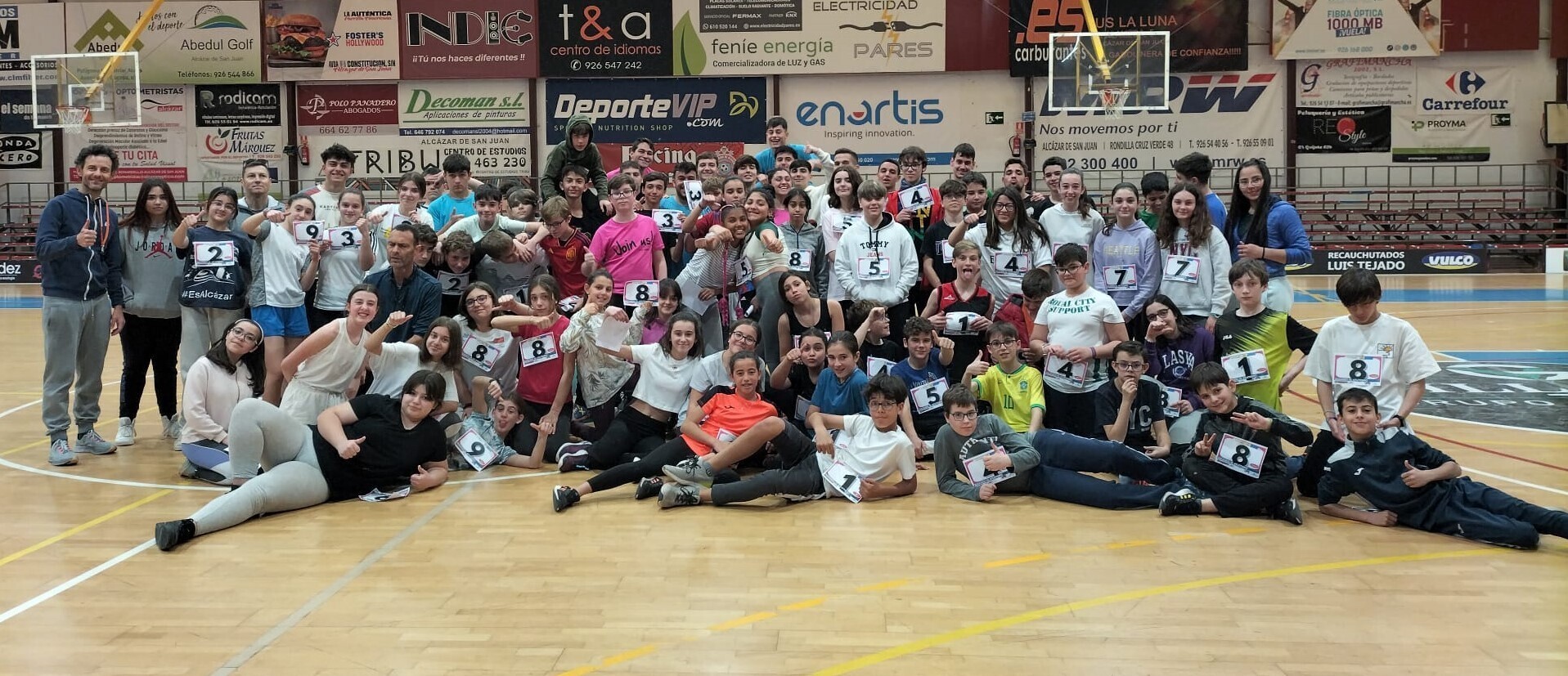 Los alumnos y alumnas “atletas” participantes se dividieron en nueve equipos para ir sumando su esfuerzo, compromiso y dedicación en el programa de pruebas atléticas adaptadas al contexto escolar buscando que tod@s fueran protagonistas.