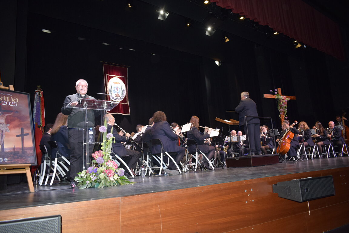 El párroco de San Juan, Ambrosio León, protagonizó anoche en el Teatro Emilio Gavira de Alcázar de San Juan el Pregón de la Semana Santa 2025, y lo hizo de una forma diferente, contando durante todo su pregón con la Asociación Banda de Música, que le fue poniendo el sonido adecuado a su recorrido por las diferentes procesiones que van teniendo lugar durante la Semana de Pasión y que aprovechó para abordar, en cada una, los problemas reales de la sociedad.