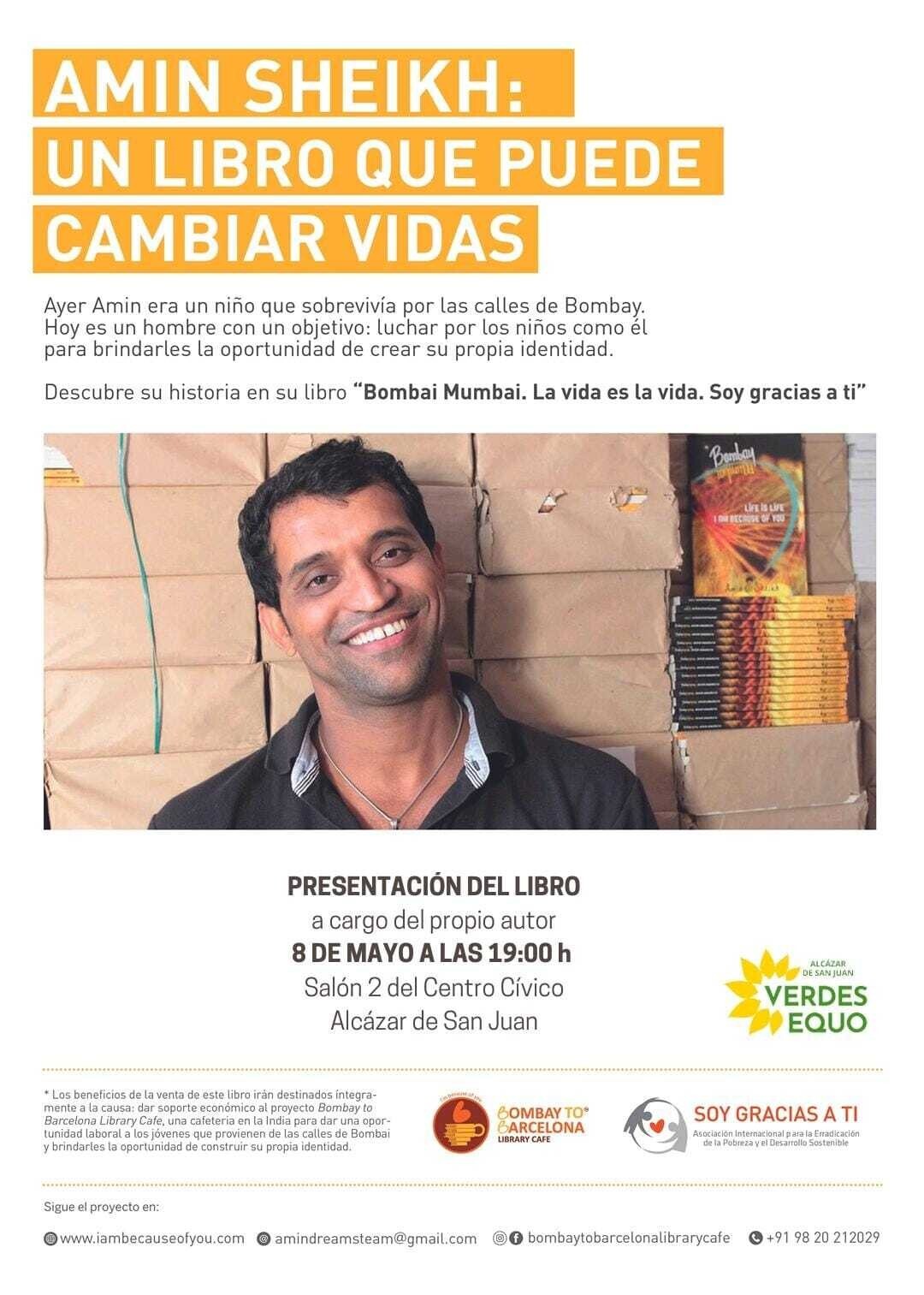 Amin visita este lunes día 8 de mayo a las 19:00 el centro cívico de Alcázar de San Juan para presentar sus dos libros autobiográficos: La vida es la vida. Soy gracias a ti (libro traducido a 8 idiomas y con ventas superiores a los 20.000 ejemplares) y El superpoder que llevas dentro (autobiografía adaptada para niños). Ambos pueden ser adquiridos en castellano o en inglés y los beneficios íntegros de la venta van destinados a dar soporte económico al proyecto.