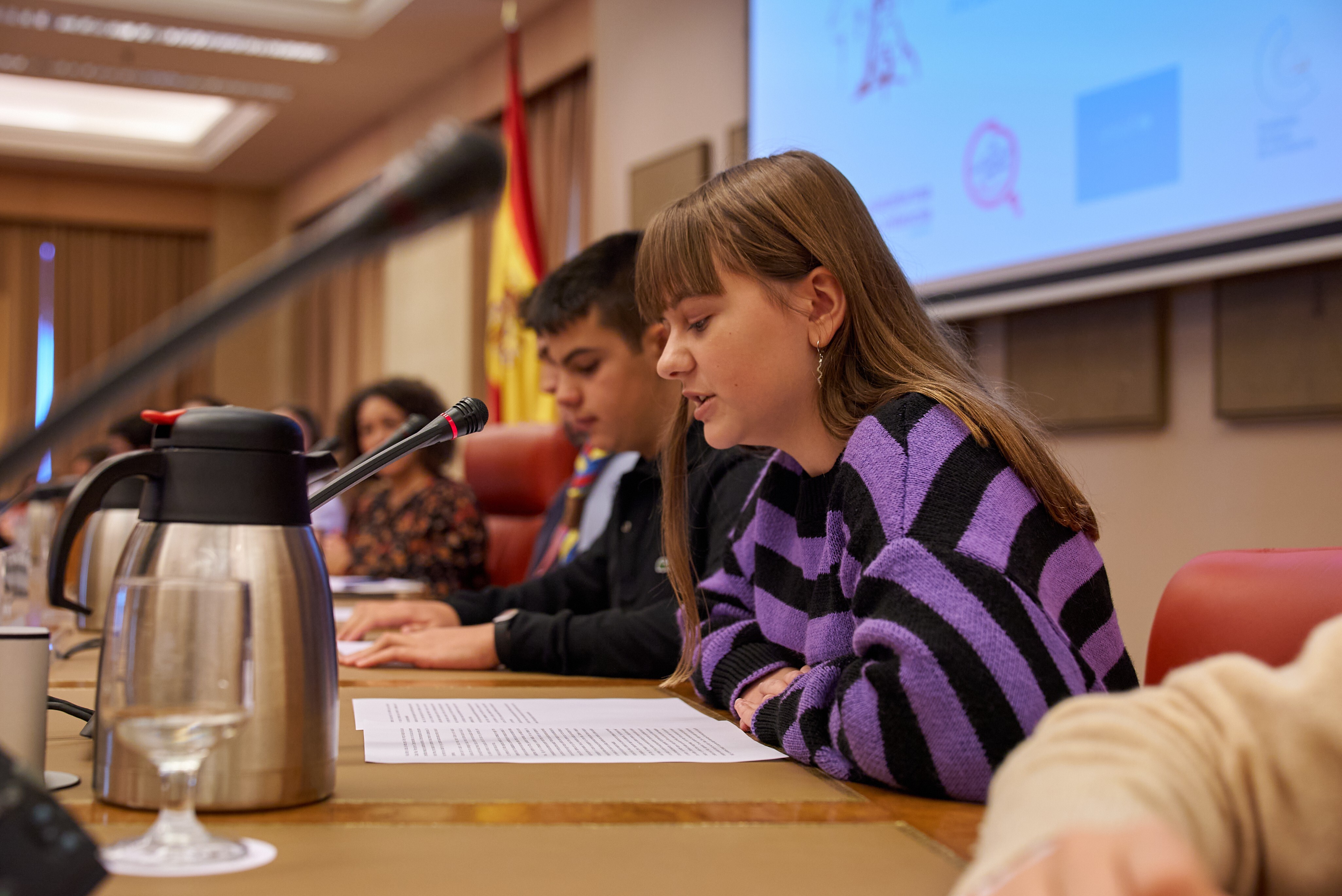 Representando a consejos locales y colectivos de participación infantil y adolescente, comparecieron ante la Comisión de Derechos de la Infancia y la Adolescencia del Congreso de los Diputados para presentar propuestas sobre la problemática del bullying, participación infantil y adolescente, educación inclusiva, medio ambiente y salud mental, en una iniciativa impulsada por la Plataforma de Infancia y UNICEF España.