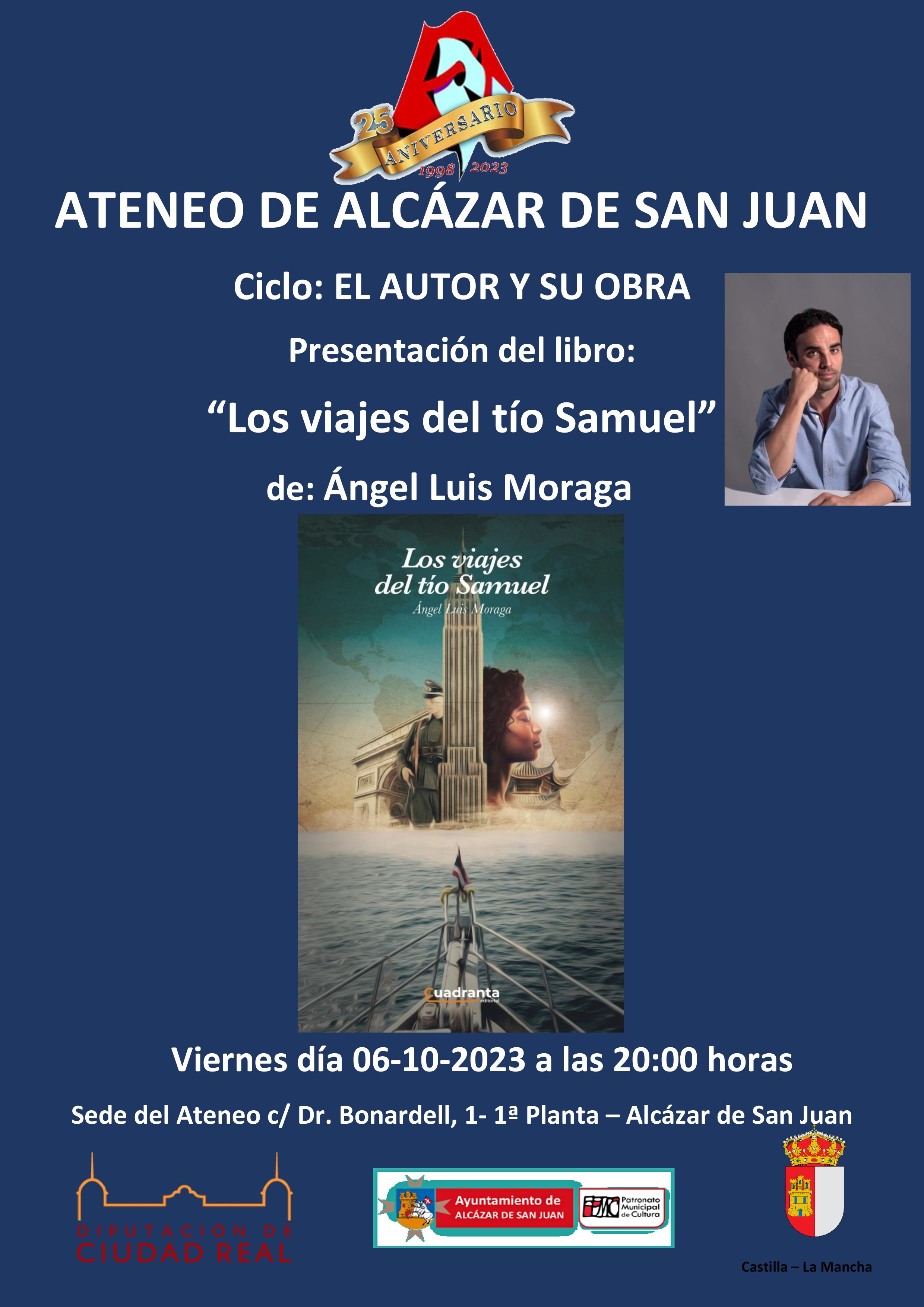 Este viernes, 6 de octubre y a las 20:00 horas, tendrá lugar, la sede el Ateneo de Alcázar, calle Dr. Bonardell, 1 1ª planta, la presentación del libro “Los viajes del tío Samuel”, del autor Angel Luis Moraga, dentro del ciclo “El autor y su obra”.