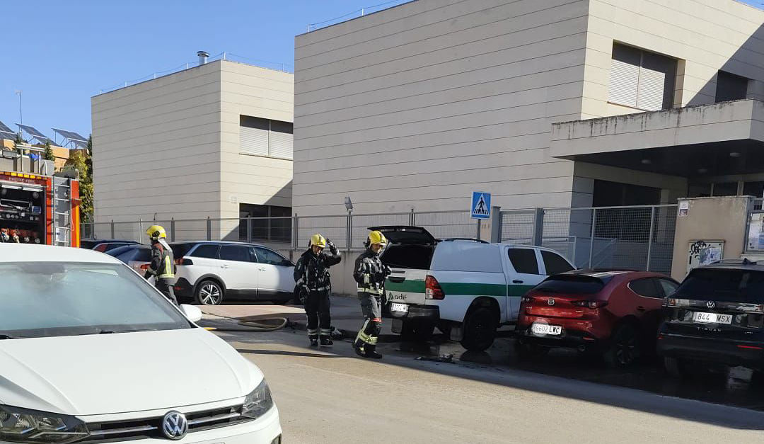 Un vehículo, propiedad de Adif, ha salido ardiendo este lunes mientras estaba aparcado en la puerta del colegio El Santo de Alcázar de San Juan.