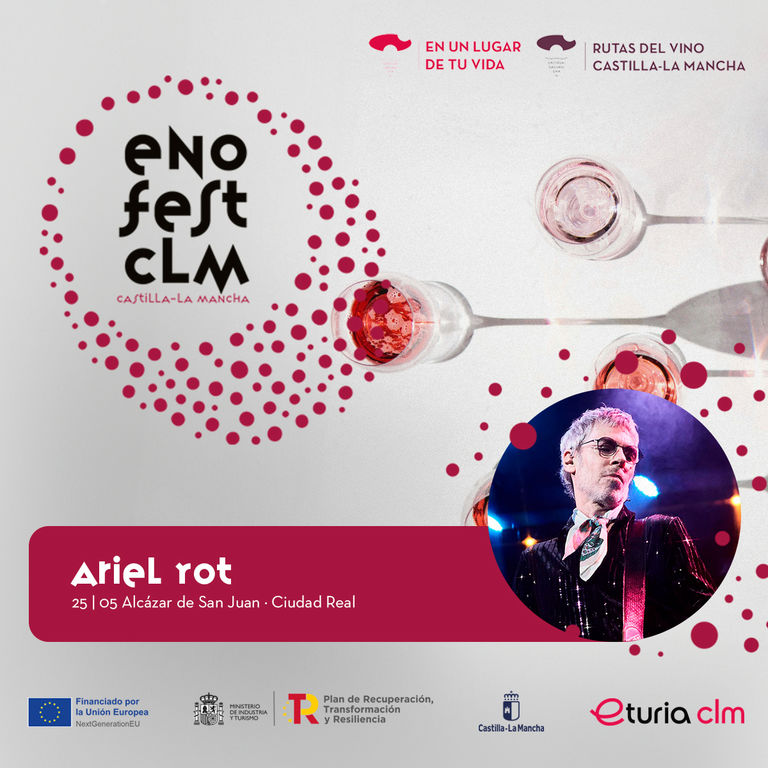 El patio de la sede del Consejo Regulador se prepara para acoger a Ariel Rot en lo que será una de las citas más esperadas del año en el municipio alcazareño. La cita, este sábado 25 de mayo, pondrá la guinda a un intenso programa diseñado en el EnoFest CLM que comprende visitas guiadas a bodegas (acogidas a la Ruta del vino de La Mancha), espacios monumentales y degustaciones gastronómicas.