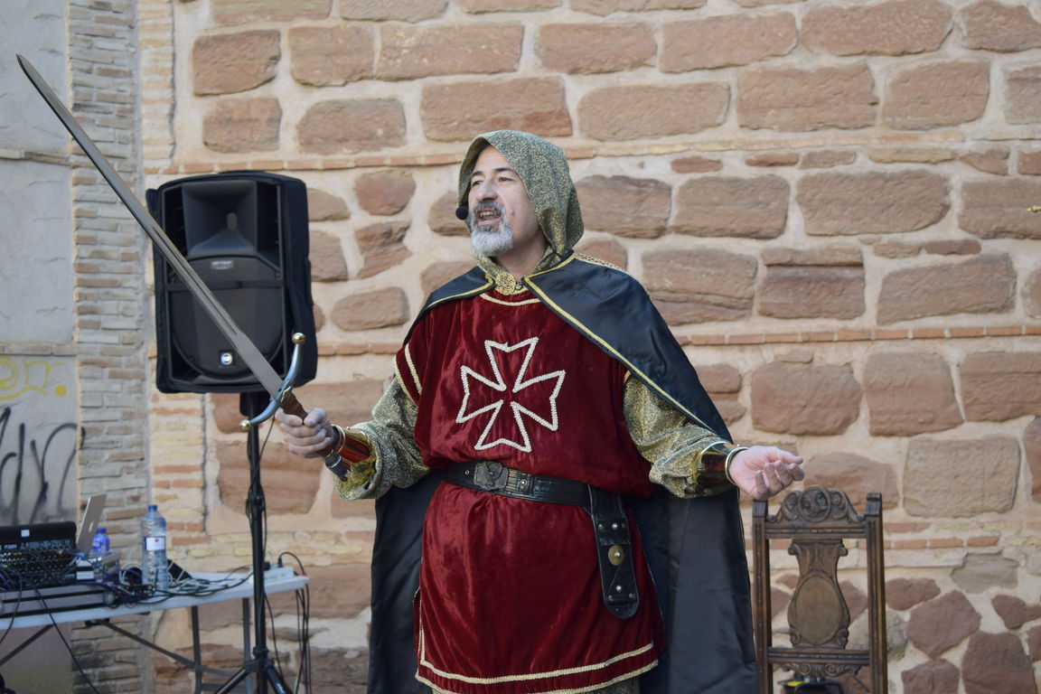 Previo a su pregón, Jesús Miguel Montalvo comenzó con una recreación de fragmentos de la Vela de Armas, el nombramiento de caballeros o el cambio de guardia de la Noche del Patrimonio.