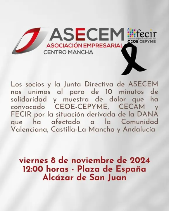 ASECEM se suma al "acto de solidaridad" previsto a las 12 por la situación derivada de la DANA