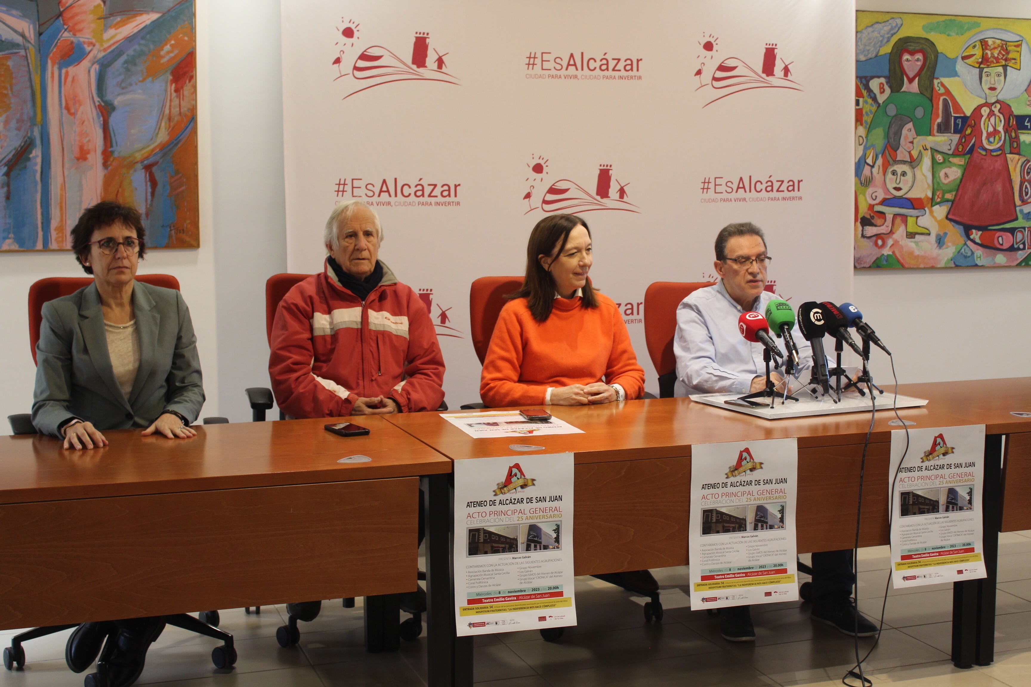 El Ateneo de Alcázar de San Juan celebra este miércoles la Gala de su XXV Aniversario. Un evento con el que ponen el broche final a un completo año de actividades de diversa índole que incluirá, además, un concierto solidario a favor de los damnificados por el terremoto de Marruecos. La alcaldesa Rosa Melchor y la concejala de Cultura, Cristina Perea, han acompañado al presidente de la asociación, Luis Ángel Agenjo, así como a Adolfo Tabasco, representante de la Plataforma "Hospitium Fraternitas", que engloba a una serie de asociaciones y que serán los receptores del donativo solidario.