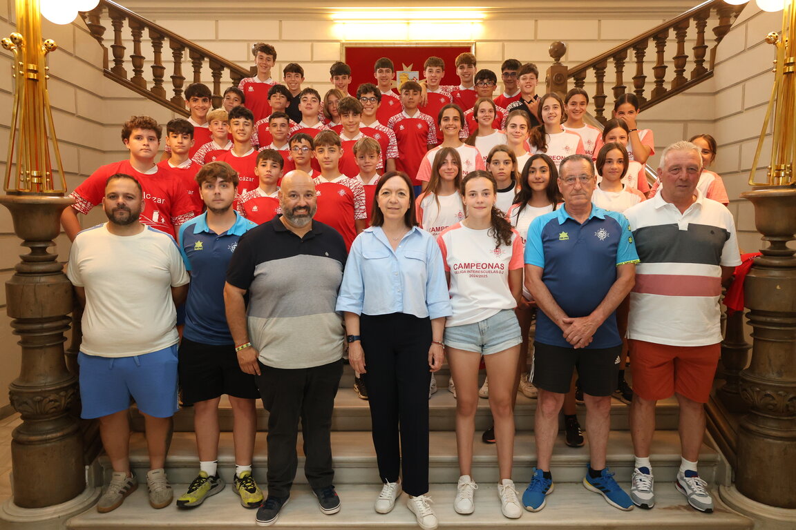 La alcaldesa de Alcázar de San Juan, Rosa Melchor, junto al presidente del Instituto Municipal de Deportes, Javier Ortega, ha recibido en el Salón Noble del Ayuntamiento a los equipos femenino e infantil masculino de la Escuela de Fútbol Base de Alcázar de San Juan, en reconocimiento a los importantes logros alcanzados esta temporada. Ambos conjuntos, dirigidos por Millán Sierra y Juan García-Morato respectivamente, se han proclamado campeones de liga en sus categorías dentro del Campeonato Interescuelas de la Federación de Fútbol de Castilla-La Mancha, reflejando el excelente trabajo que se realiza en el deporte base local.