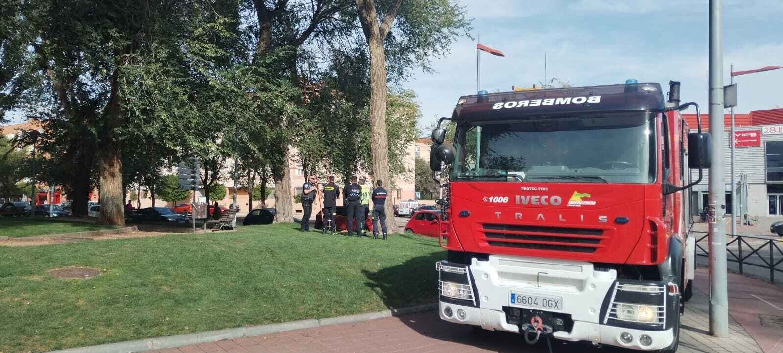 Bomberos del Parque de Alcázar de San Juan y agentes de la Policía Local se han desplazado este jueves hasta la Avenida de los Institutos, en la esquina con la Avenida de la Constitución, para rescatar a un gato que se encontraba en lo alto de un árbol desde ayer y desde donde no podía bajar.
