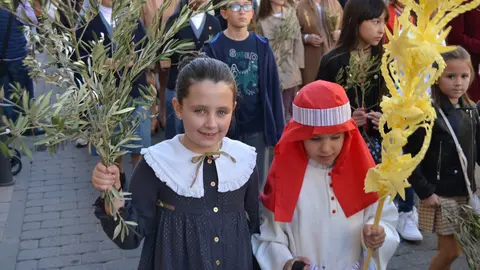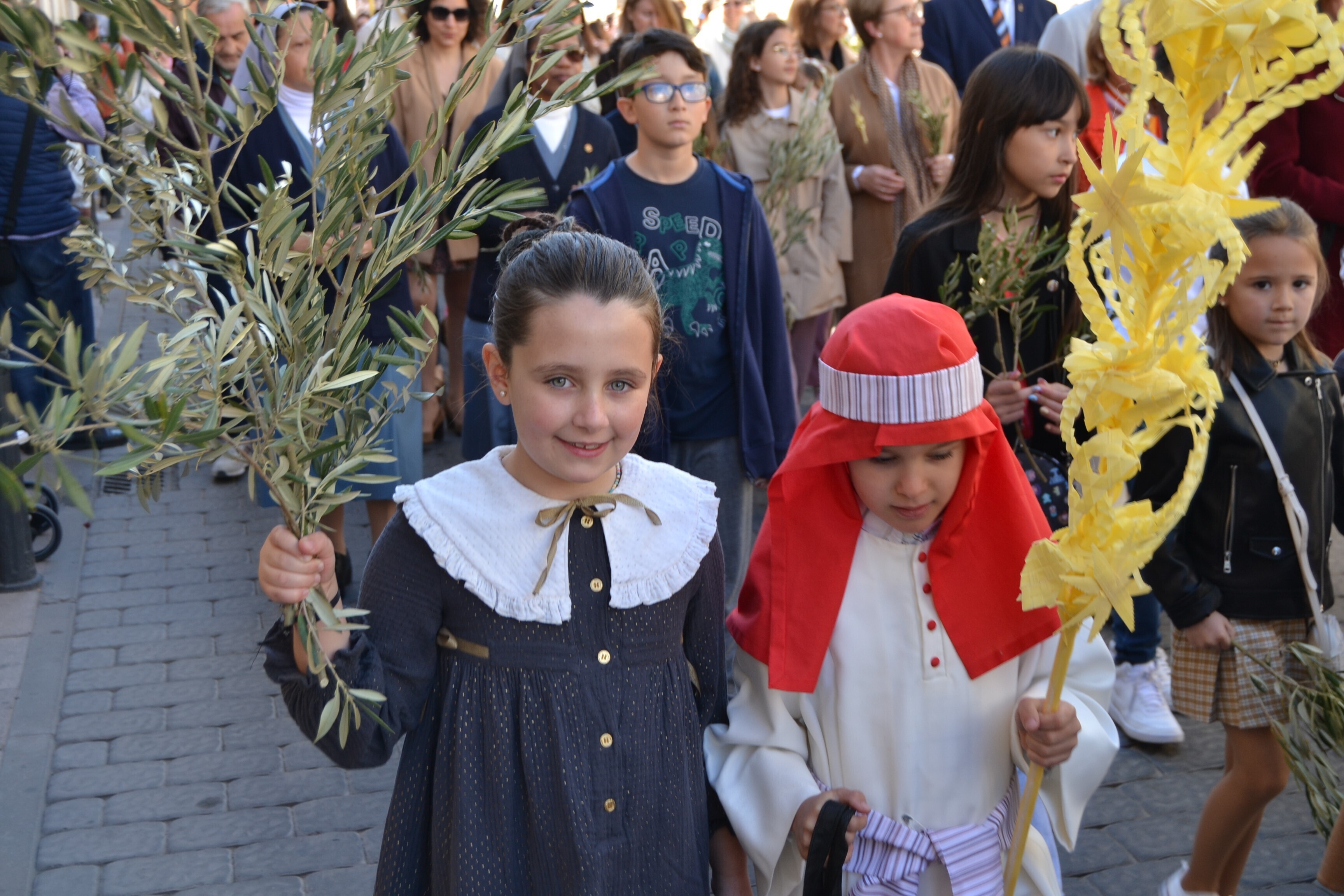 Con algo de viento y abundante sol, abriendo la procesión, la banda de Jesús del Perdón, seguida de numerosos niños y niñas de todas las parroquias, ataviados en algunos casos como hebreos y con ramas de olivo en sus manos. Delante de la imagen de Jesús a lomos de la borriquilla, también numerosos padres y madres con sus hijos; y detrás, cerrando el desfile sacerdotes, autoridades, miembros de la Junta General de Cofradías y representantes de las distintas hermandades y devotos.