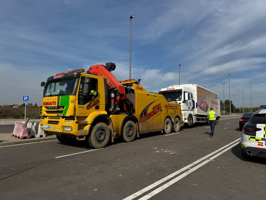 Diez días después de la terrible DANA, el camión de la empresa alcazareña Transportes Benavent afectado por la riada ha salido del puerto de Valencia, donde fue depositado tras pasar varios días estacionado debajo de un puente en la V31, y está siendo trasladado hasta un taller en Manzanares, donde los peritos presupuestarán las averías para ver si merece la pena arreglarlo o, por el contrario, hay que declararlo siniestro.