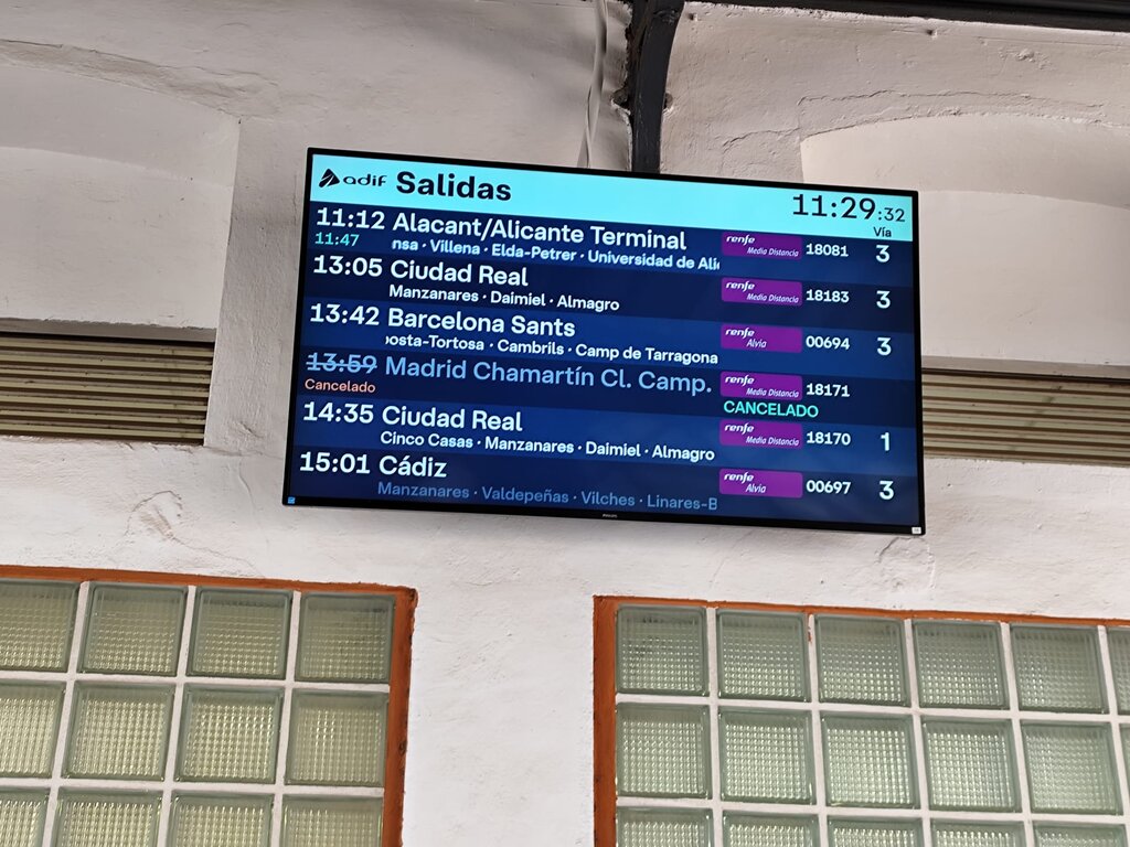 Según la información disponible, no hay trenes cancelados hoy en la relación Alcázar–Albacete, que opera con normalidad en esta jornada.
