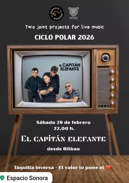 El espectáculo programado es el primero del denominado Ciclo Polar, una nueva propuesta de música en directo impulsada conjuntamente por la organización del ciclo y Espacio Sonora, que apuesta por el indie, el pop y el rock alternativo con buena vibra. Sobre el escenario, El Capitán Elefante, una formación asentada en Bilbao con un sonido enraizado en el power-pop más guitarrero, que alterna canciones bailables con otras de carácter más introspectivo. Sus letras transitan entre escenas cotidianas y atmósferas más evocadoras, construyendo un estilo propio dentro del panorama alternativo nacional.