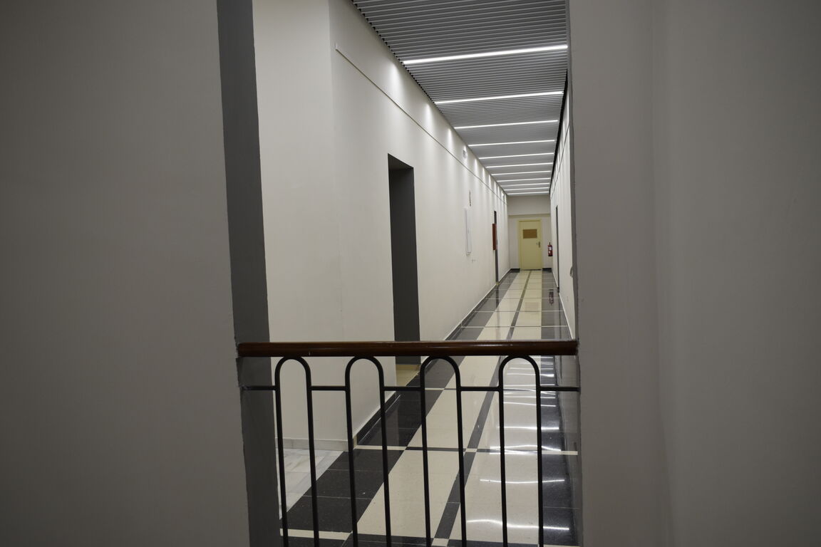 En cuanto a la eficiencia energética, se ha mejorado la climatización del edificio, que ahora cuenta con unas ventanas mejor preparadas para aislar la temperatura exterior de la interior. Otra de las actuaciones importantes ha sido la de unificar la instalación eléctrica, así como la mejora del aislamiento acústico, la iluminación de los espacios y la instalación de paneles solares en la cubierta del edificio.