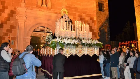 Los desfiles procesionales de la Semana Santa 2023 comenzaron ayer por la noche, con la salida de la iglesia-convento de San Francisco de Asís de la procesión de Ntra. Sra. de los Dolores, acompañada por la Agrupación Musical El Perdón de Alcázar de San Juan, mujeres con mantillas y nazarenos de la Cofradía de Jesús Caído, la Verónica y la Dolorosa, con sus túnicas de color blanco y morado cardenal.