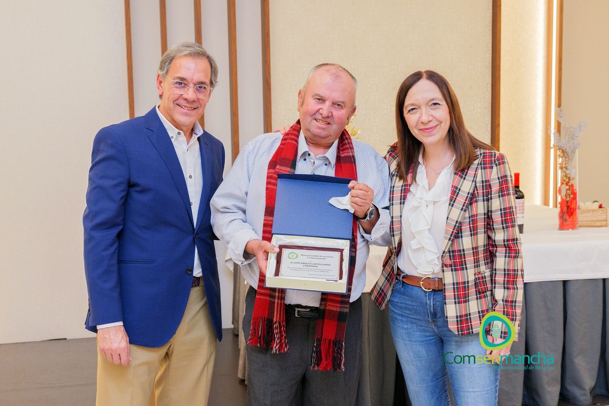 En el Pleno celebrado recientemente por la Mancomunidad de servicios Comsermancha, en un acto conjunto de los trabajadores y de los representantes de los municipios en la Corporación, se reconoció a José Emilio Castellanos Cardenas con la entrega de una placa por parte de la presidenta, Rosa Melchor, y del gerente, Antonio Martínez, en reconocimiento por los servicios prestados a la institución con motivo de su jubilación.